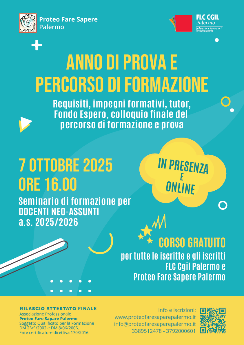 Seminario di formazione gratuito per docenti neo-assunti iscritti a FLC CGIL, in presenza e online, a.s. 2025/2026 - 7 ottobre 2025 ore 16.00