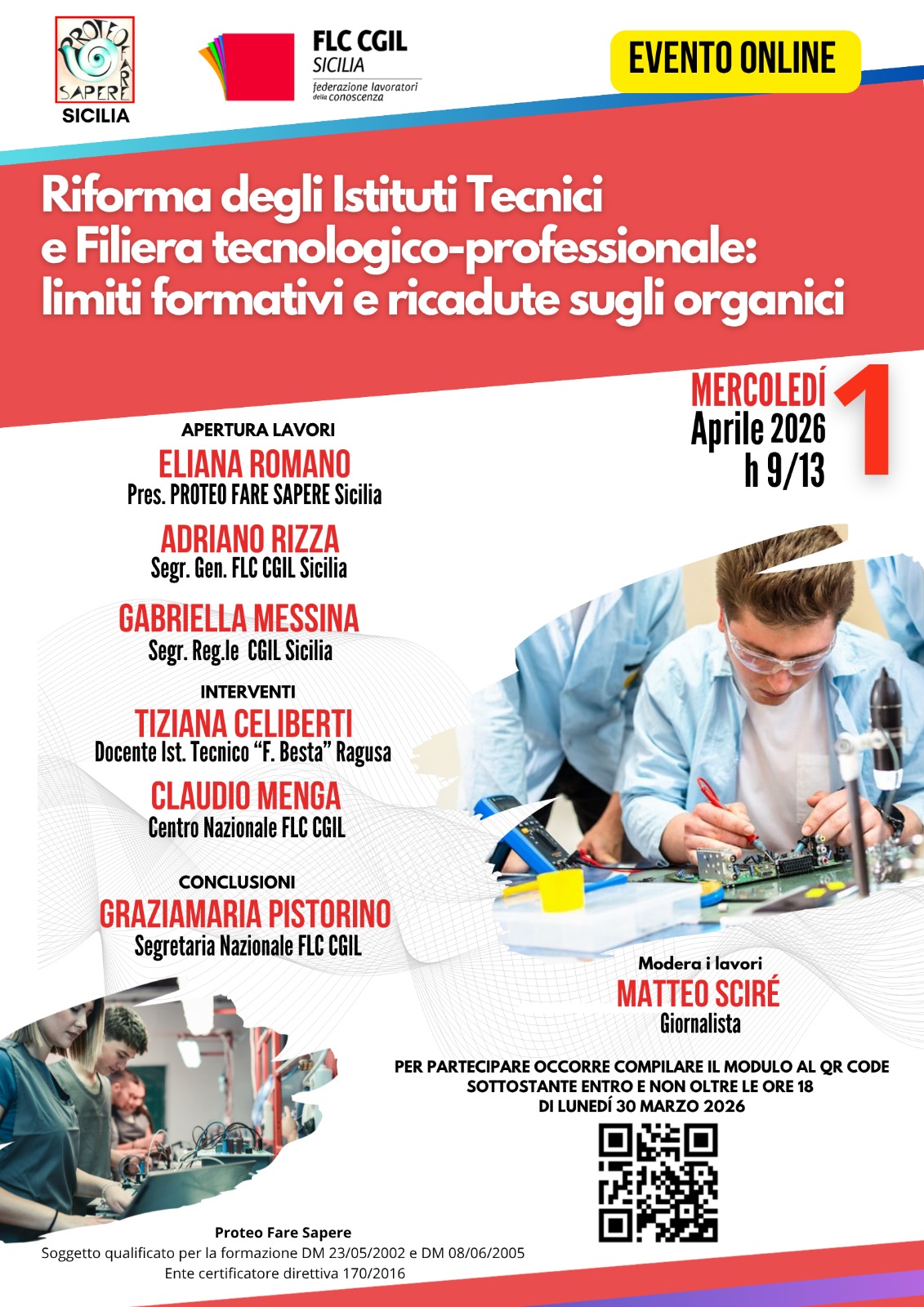 RIFORMA ISTITUTI TECNICI: EVENTO ONLINE MERCOLEDI' 1 APRILE